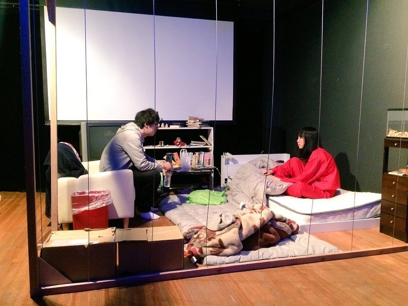 行動展示とは動物の展示方法で、生態を自然に誘発させて鑑賞者に見せるよう工夫したもの。主観的な行動がエンタメになり得るならそれは希望だなと思い、人間の行動展示をテーマに作品を作るシリーズにこの名前をつけることにした。 行動展示①では、一本の二人芝居の脚本を元にそれぞれ役者が違う三つの作品を作る。