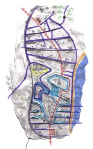 ③足跡から架空の町の地図を作る。(全員で一つの架空の町を作る)